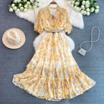 | nameOriginal | Bohemian seaside vacation long skirt women's fashionable V-neck ruffled waist slimming A-line floral dress |