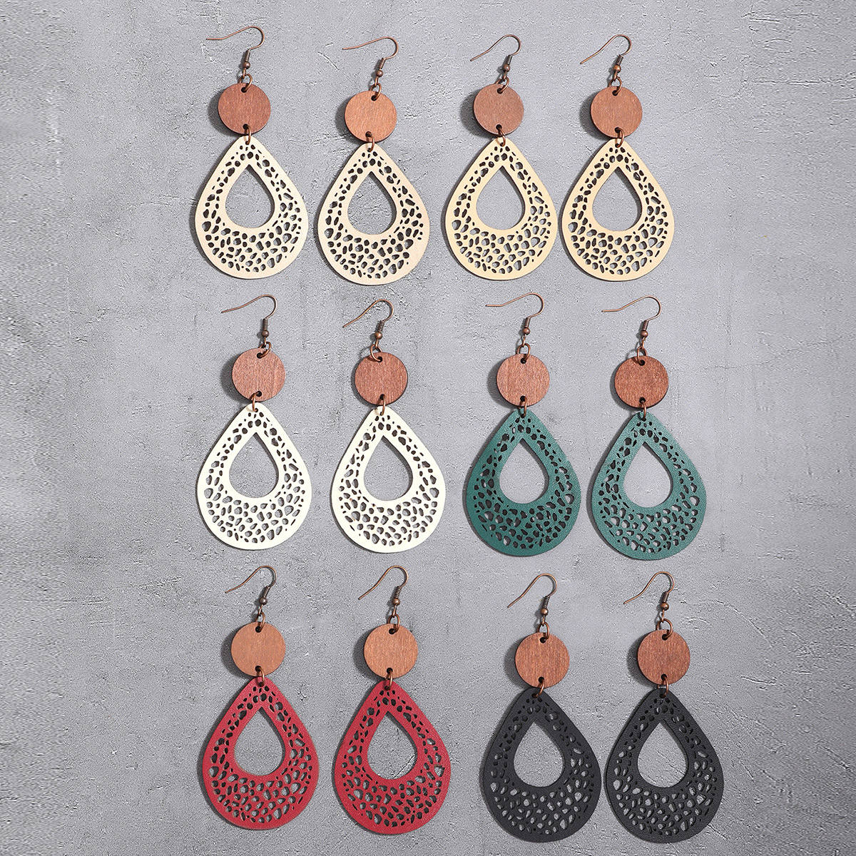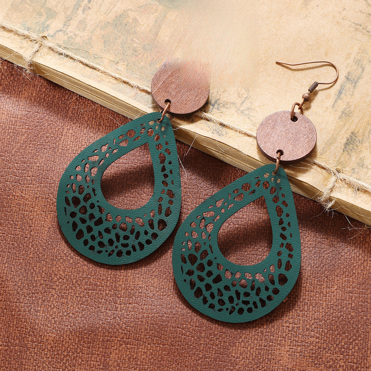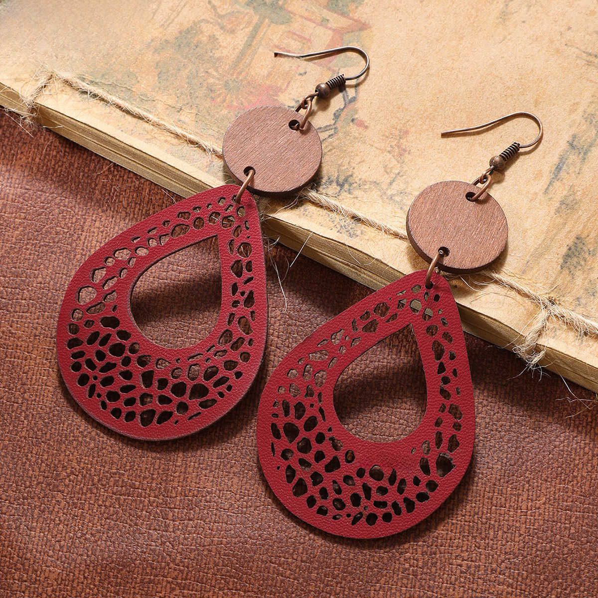 | nameOriginal | Bohemian style vintage earrings earrings European and American earrings hollow mesh handmade wood piece leather cross-border |