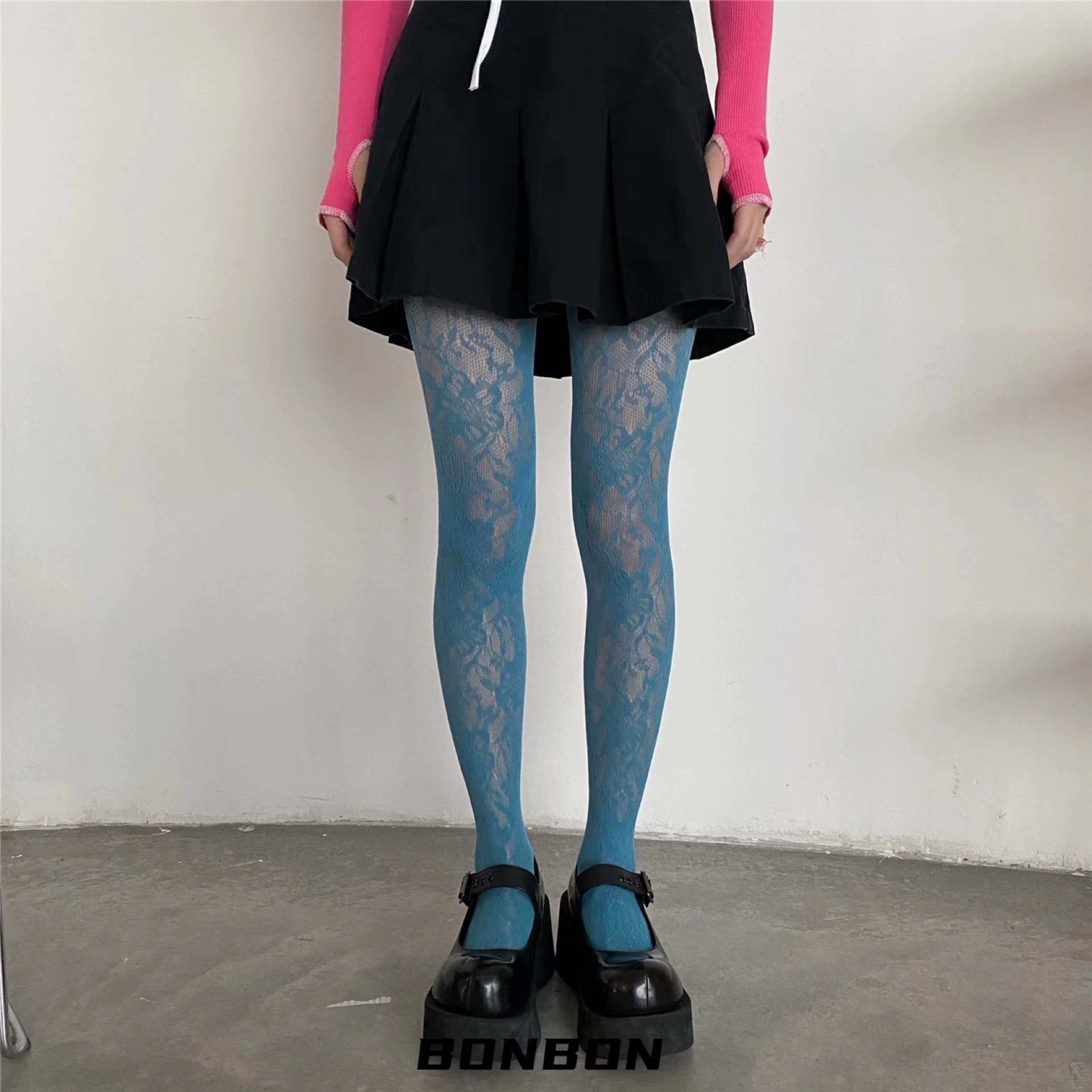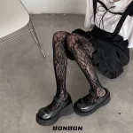 BON 22SS spring and summer niche color pantyhose blooming flowers solid color lace fishnet stockings sweet cool spicy stockings