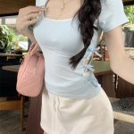 | nameOriginal | Bow Hollow T-Shirt Women's Summer Design Niche Sweet Spice Girl Slim-fit Top Solid Color Halter Sling suit |
