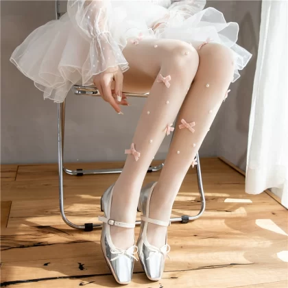 | nameOriginal | Bow-knotted pearl white stockings for women, thin, sweet, Japanese pure desire white pantyhose, sexy black silk JK bottoming stockings |
