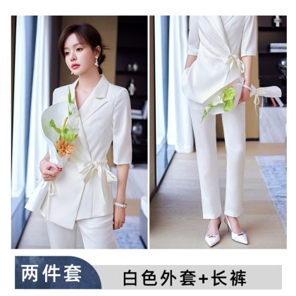 | nameOriginal | Bow lace suit coat leggings two-piece summer new suit suit women's temperament pants wholesale |