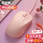 BOW Mouse Wired Silent Mute USB Laptop Desktop Computer Ergonomic Office Home Girl Pink
