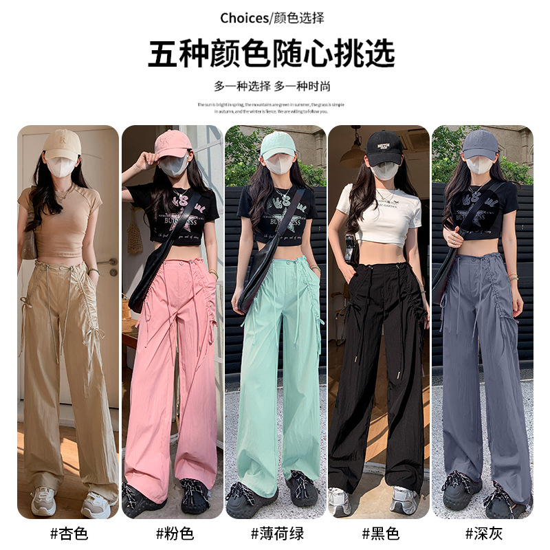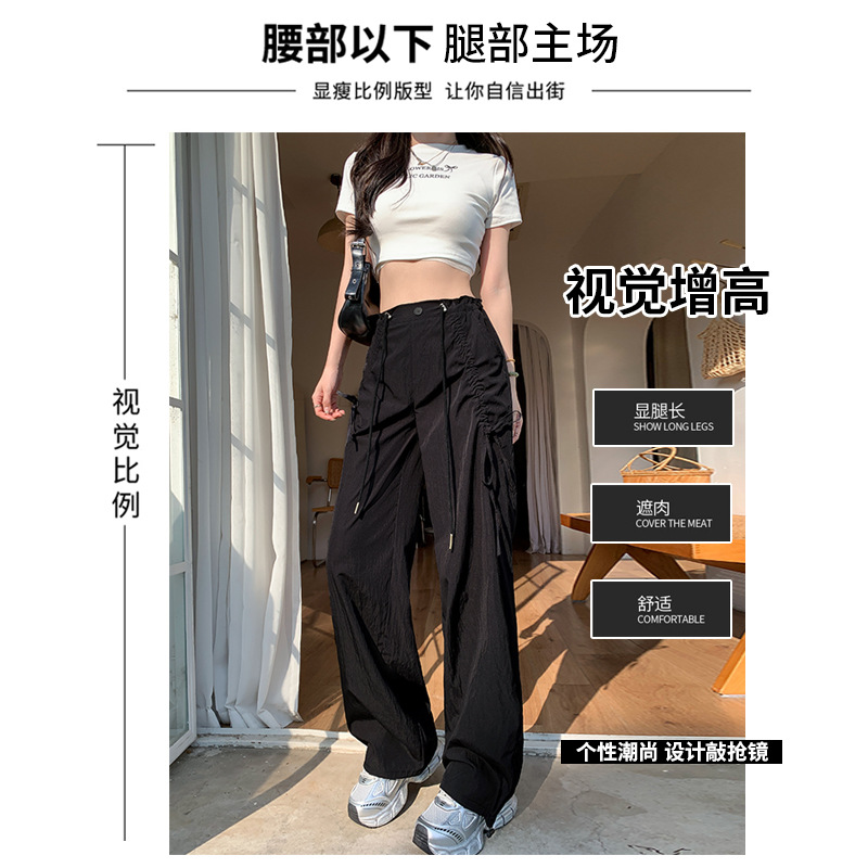 | nameOriginal | Bowknot overalls women's summer thin 2024 new high waist drape drawstring wide leg pants quick-drying American sports pants |