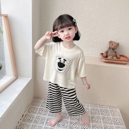 | nameOriginal | Boys and Girls cartoon pajamas new short sleeve children's thin air conditioning clothes home wear split suit 0034A013 |