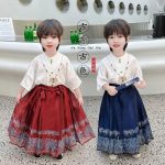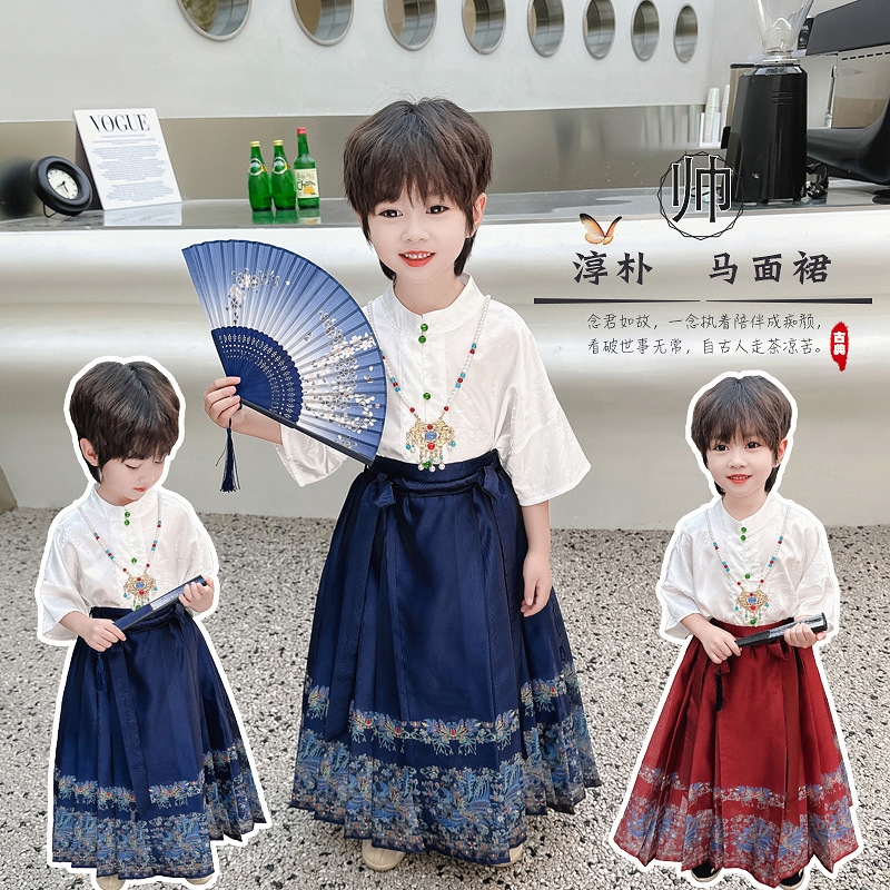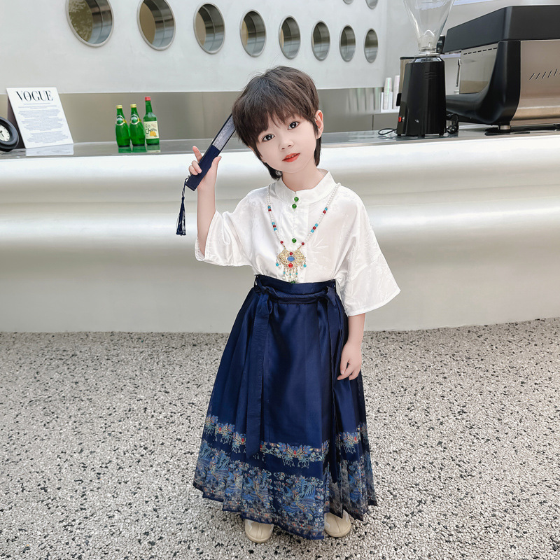 Boys and girls Chinese style horse-faced skirt suit Chinese clothing improved new Tang suit Chinese style ancient costume suit a generation of hair