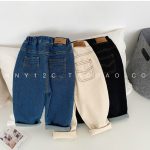 بنطال جينز فضفاض للأولاد والبنات على الطراز الكوري، ملابس متعددة الاستخدامات للربيع والخريف
