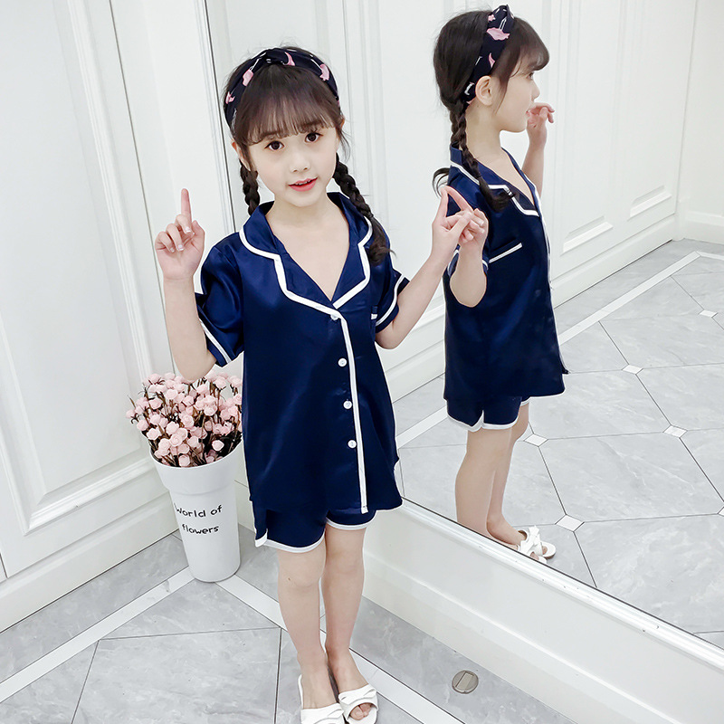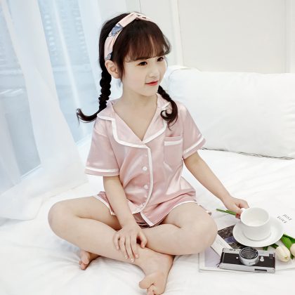 | nameOriginal | Boys and Girls Pajamas 2024 New Summer Clothes Silk Fancy suit Home Clothes Cardigan Short-sleeved Shorts Two-piece Set |