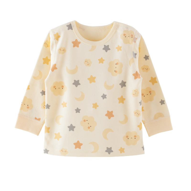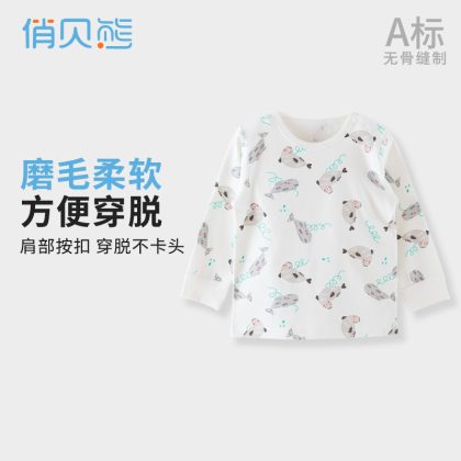 Boys' and Girls' Spring and Autumn Pure Cotton Home Clothes Top New Long Sleeve Big Children's Round Neck Base Autumn Clothes Thermal Underwear