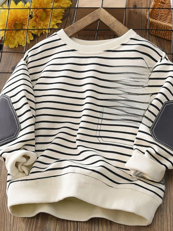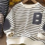 Boys and Girls spring sweater Spring and Autumn 2023 new medium and big children striped casual boys children's long-sleeved autumn clothes