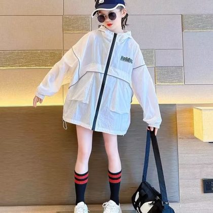 Boys' and Girls' Sunscreen Clothing Summer Thin Anti-ultraviolet Quick-drying Breathable Sunscreen Clothing for Large Children Ice Silk Coat Trendy