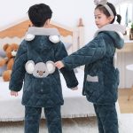 Boys' Children's Pajamas for Girls and Boys Winter fleece-lined Thickened Big Children's Girls' Baby Winter suit 13-Year-Old Home Hair