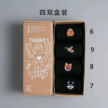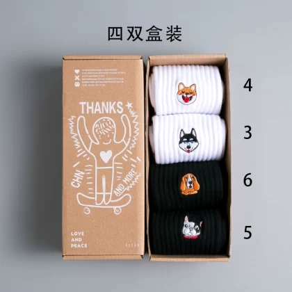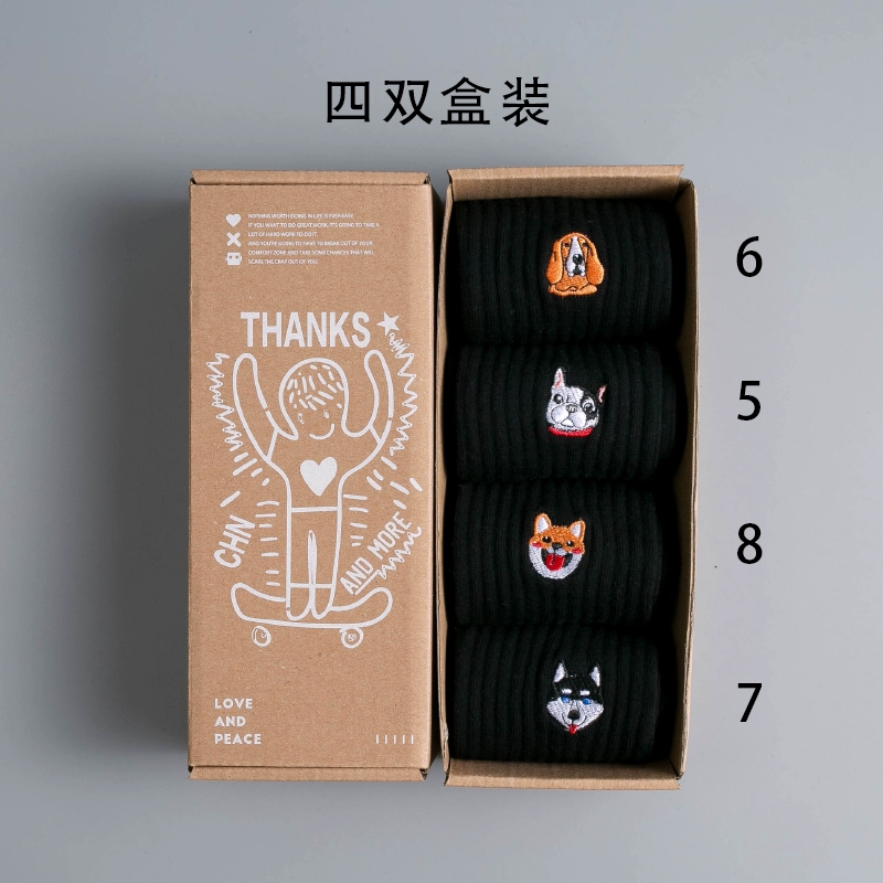 Boys' embroidered cotton anti-odor puppy socks for girls