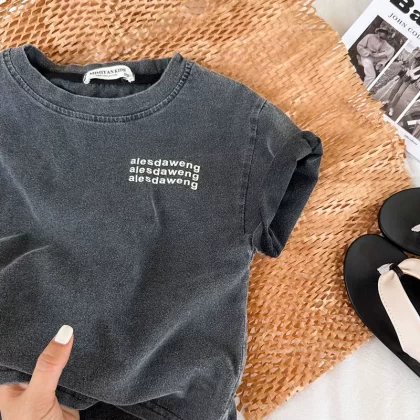 | nameOriginal | Boy's Handsome Summer Letter Printed Round Neck Pure Cotton Short-Sleeved T-shirt Trendy and Cool Little Boy's Distressed Street Clothes |