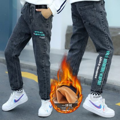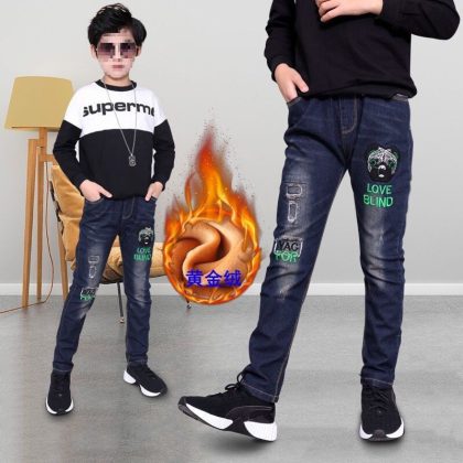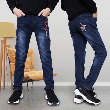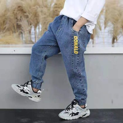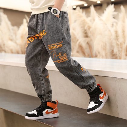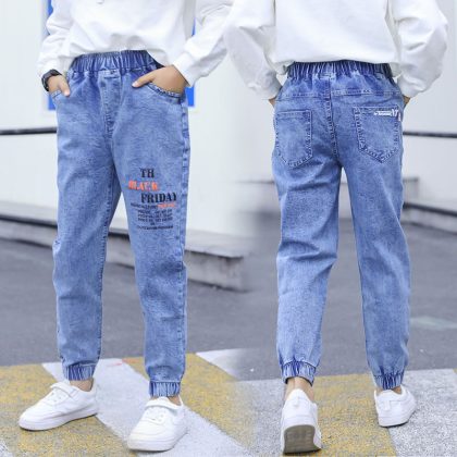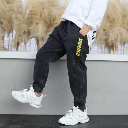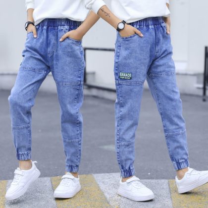 Boys' Jeans Spring and Autumn Children's Trousers Little Boy's Stretch Straight Pants Large Children's Loose Children's Wear Korean Fashionable