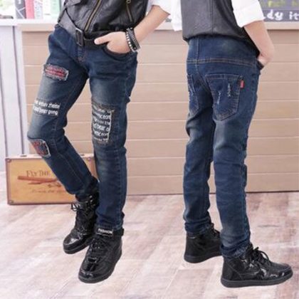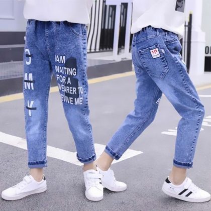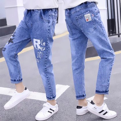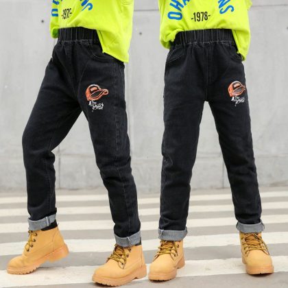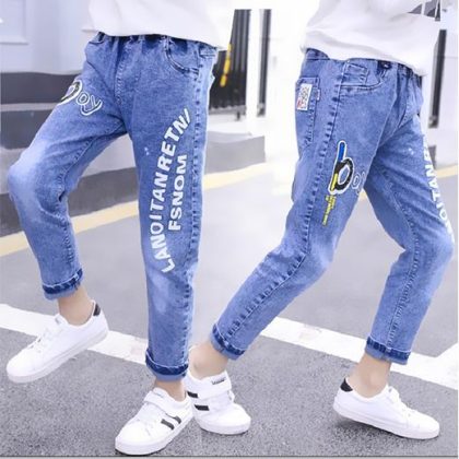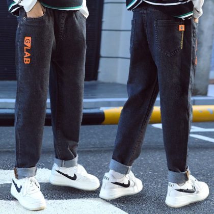الأولاد الجينز الربيع والخريف بناطيل أطفال الصبي الصغير تمتد السراويل المستقيمة كبيرة الأطفال فضفاضة ملابس أطفال الكورية المألوف