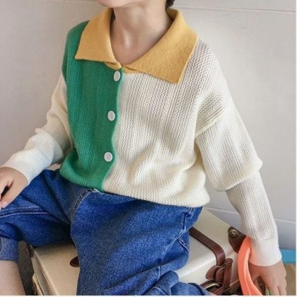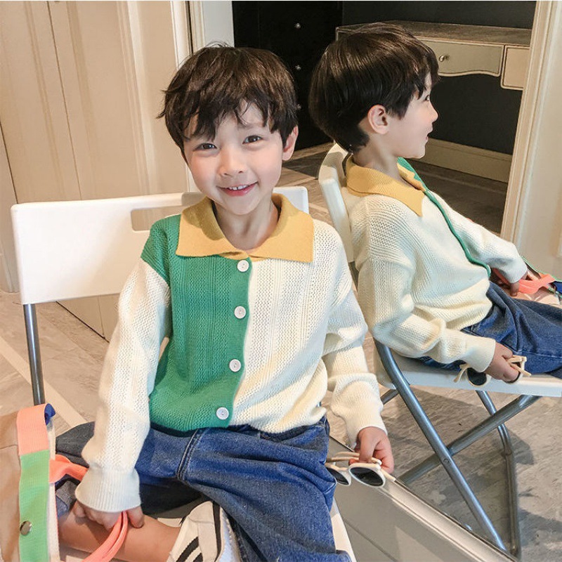 nameOriginal | Boys Knitted Cardigan Jacket 2024 Spring New Korean Handsome Contrast Color Children Spring and Autumn Boy Sweater Top |