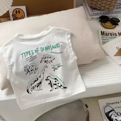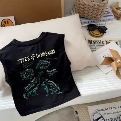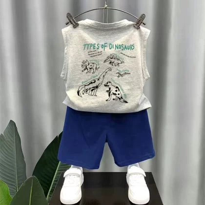 | nameOriginal | Boys Korean style vest suit summer new baby cartoon dinosaur print sleeveless top shorts two-piece trendy set |