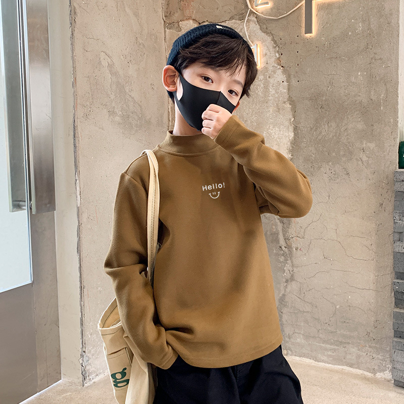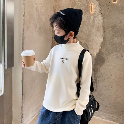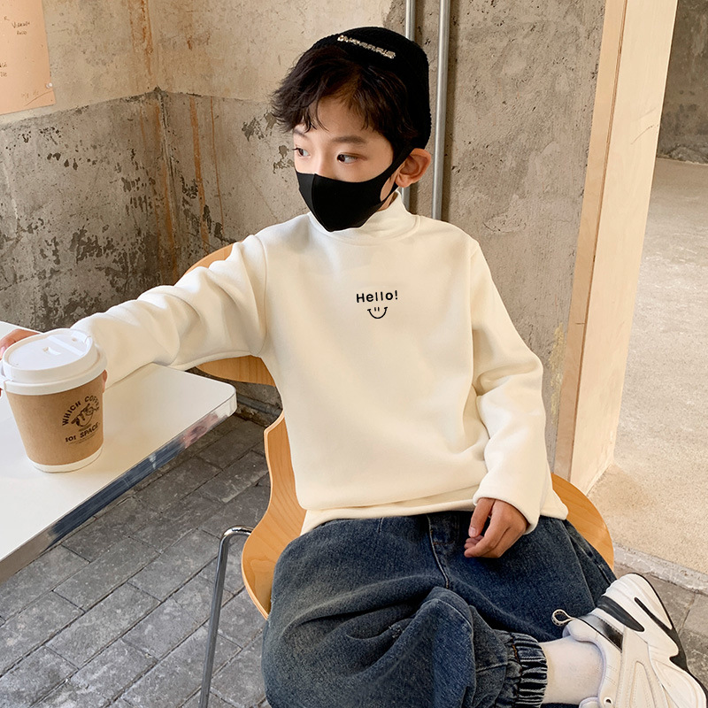Boys' mid-collar bottoming shirt autumn and winter de Velvet bottoming shirt 2023 new children's casual warm underwear winter clothes