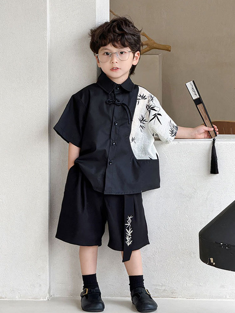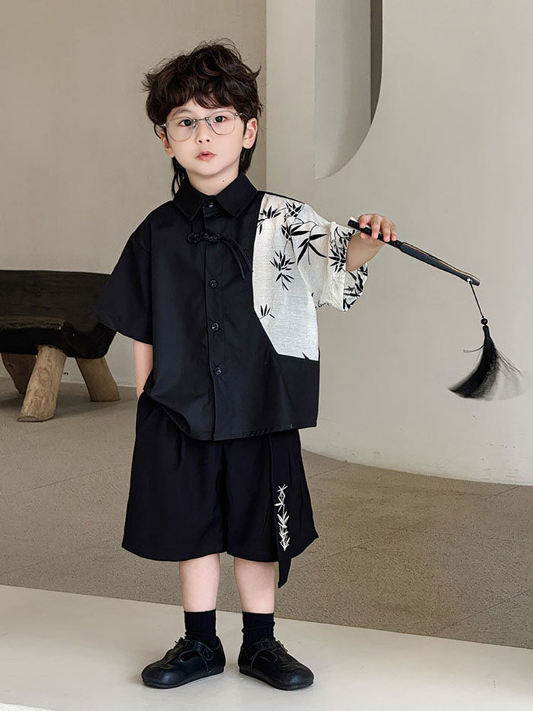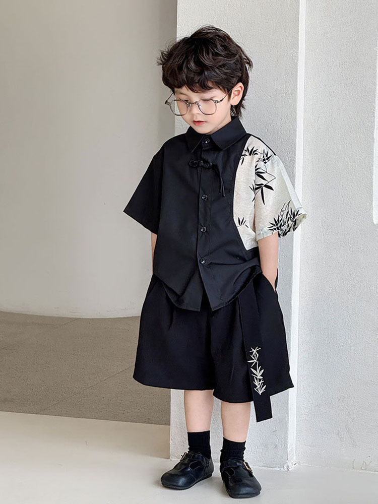 | nameOriginal | Boys' New Chinese Style National Style Shirt 2024 Summer New Fashion Lapel Color-matching Short-sleeved Shirt Hanfu Children's Clothing Trendy |