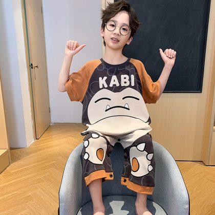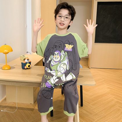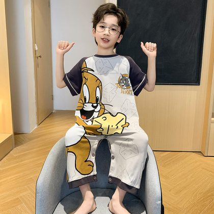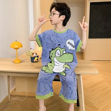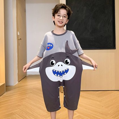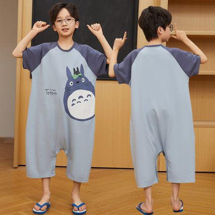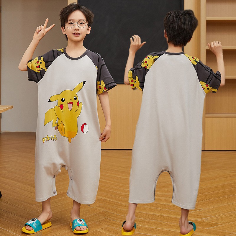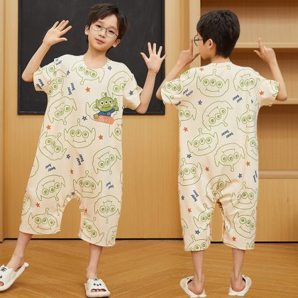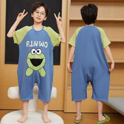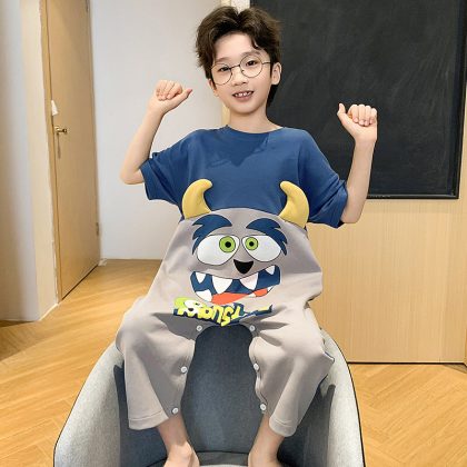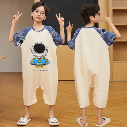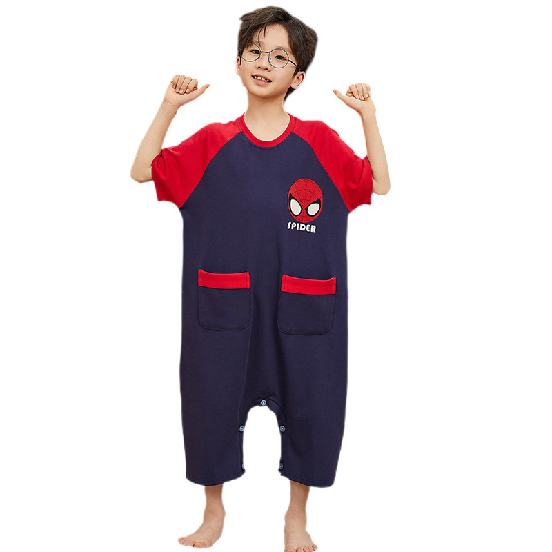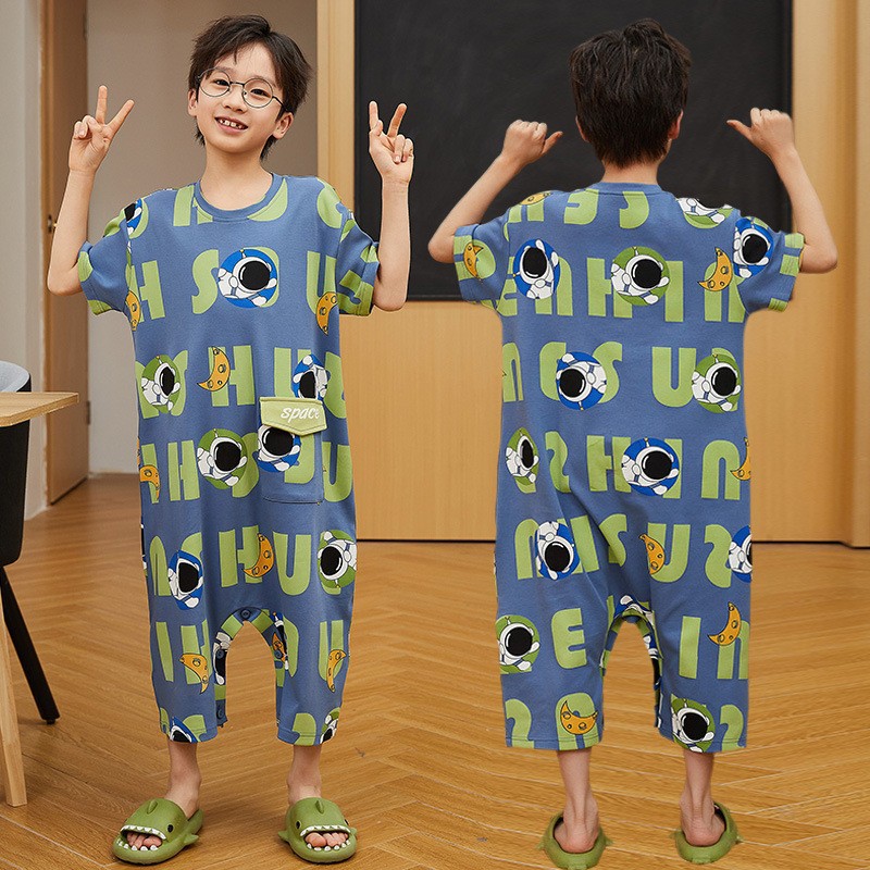 Boys' one-part pajamas children's one-part home clothes summer cotton thin for little boys and older children's summer clothes