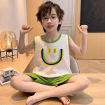 Boys' Pajamas Summer Thin Children's Cotton Sleeveless Vest Air-conditioning Clothing for Large Children and Boys Home Clothes for suit Summer