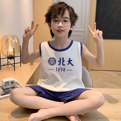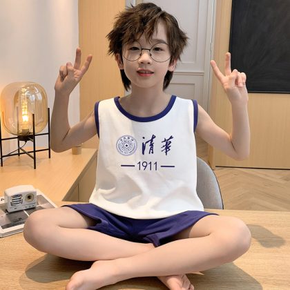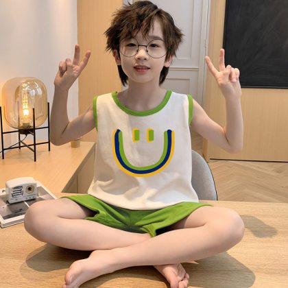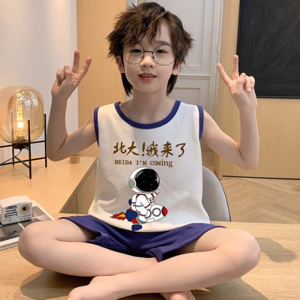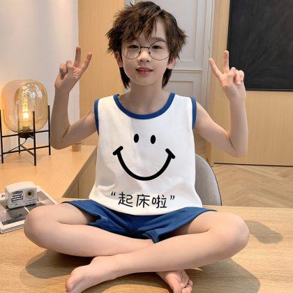 Boys' Pajamas Summer Thin Children's Cotton Sleeveless Vest Air-conditioning Clothing for Large Children and Boys Home Clothes for suit Summer