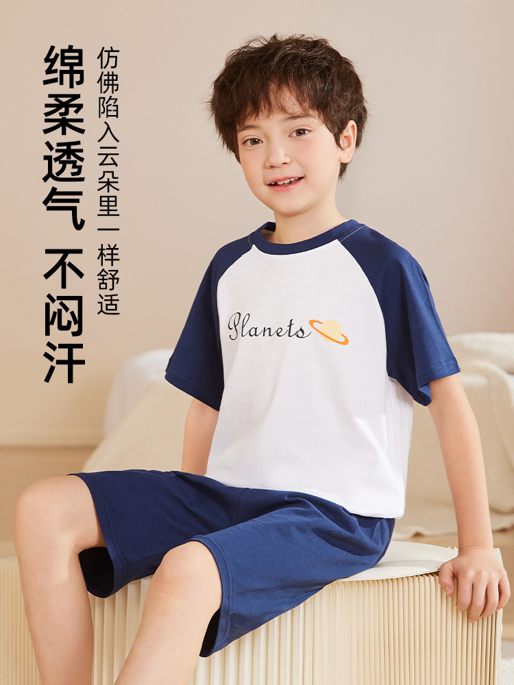 nameOriginal | Boys' Pajamas Summer Thin Short-sleeved Cotton Children's Air-conditioning Clothing 2024 New Teenager Home Clothes suit Trendy |