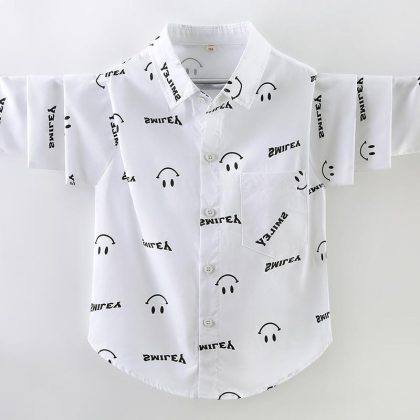 قميص الأولاد 2024 قميص أطفال كبير ربيعي جديد بأكمام طويلة وخياطة للأطفال على الطراز الغربي على الطراز الكوري بلوزة أطفال عصرية