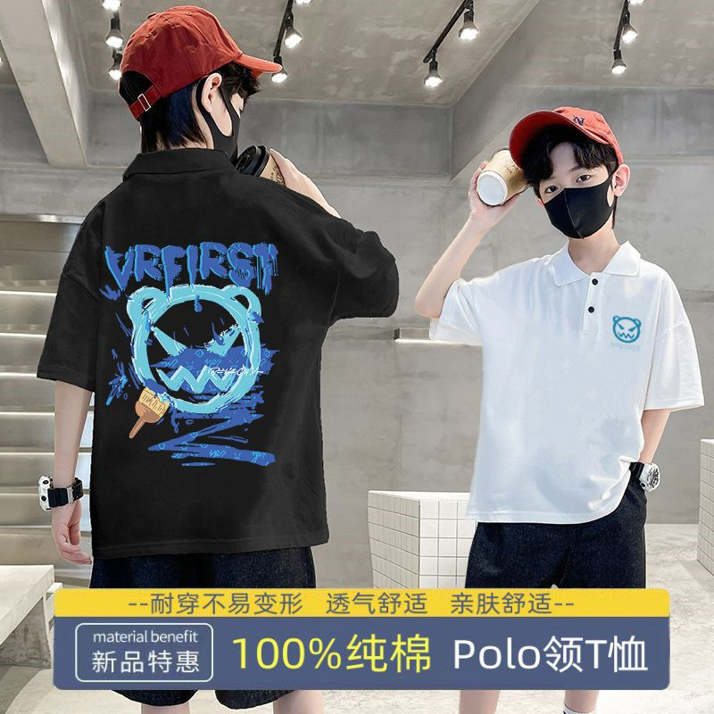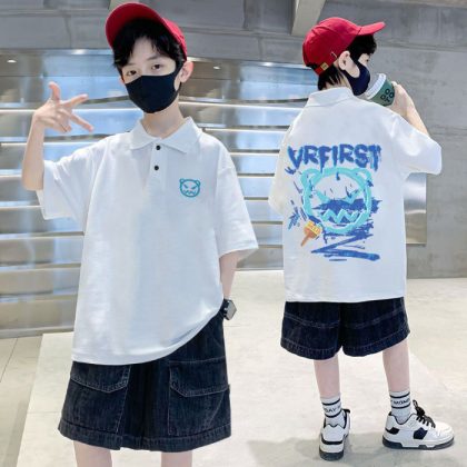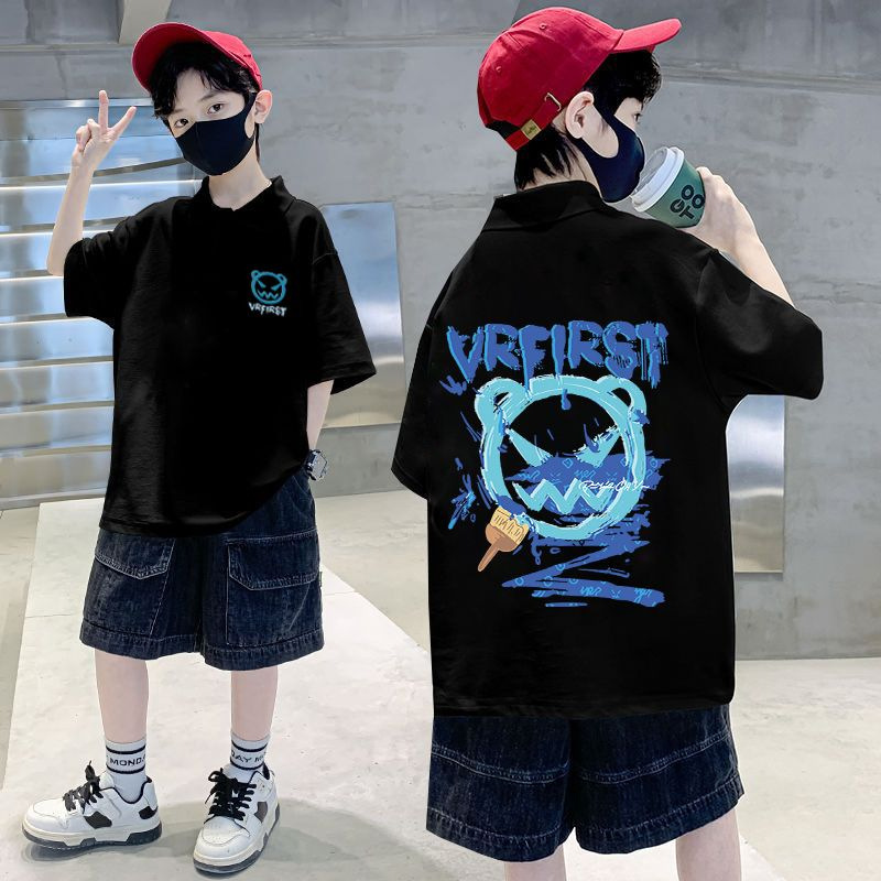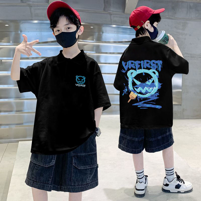 | nameOriginal | Boys' short-sleeved POLO collar 2023 Summer new western style children's half-sleeved T handsome boy cartoon fried street top |
