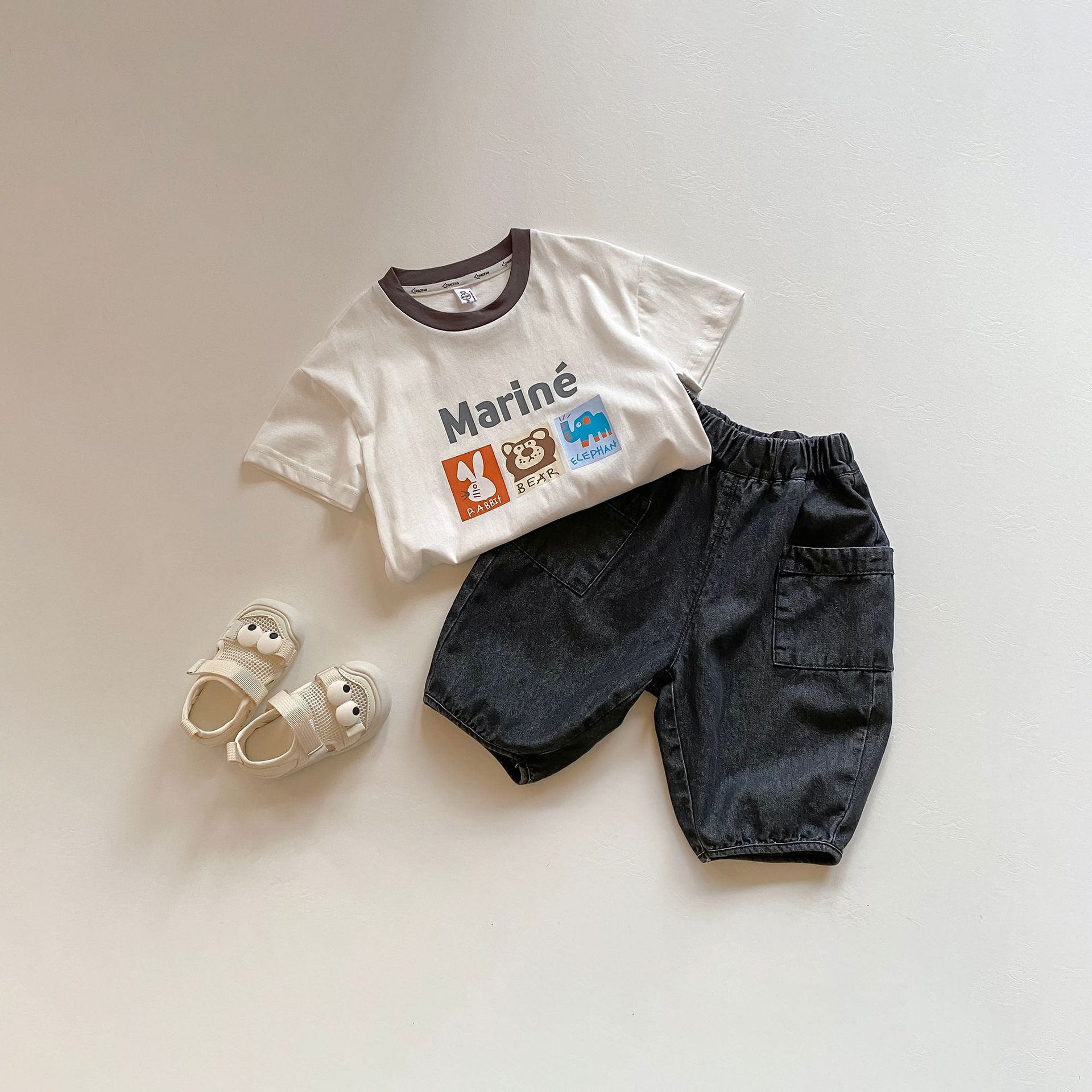 | nameOriginal | Boys Short-sleeved T-shirt 2024 Summer New Children's Fashion Cartoon Color Contrast Base Shirt Baby's All-match Top |