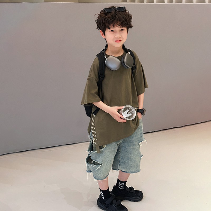 | nameOriginal | Boys' Short-sleeved T-shirt 2024 Summer New Mid-large Children's Trendy Cool Half-sleeved Irregular T-shirt Handsome Children's Top |
