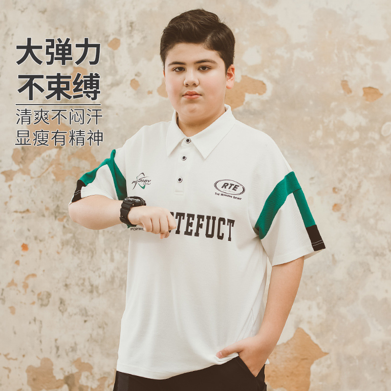 Boys' Short-sleeved T-shirt Summer POLO Shirt 2024 New Children's Half-sleeved Top Fat Kids Plus Size Loose Size
