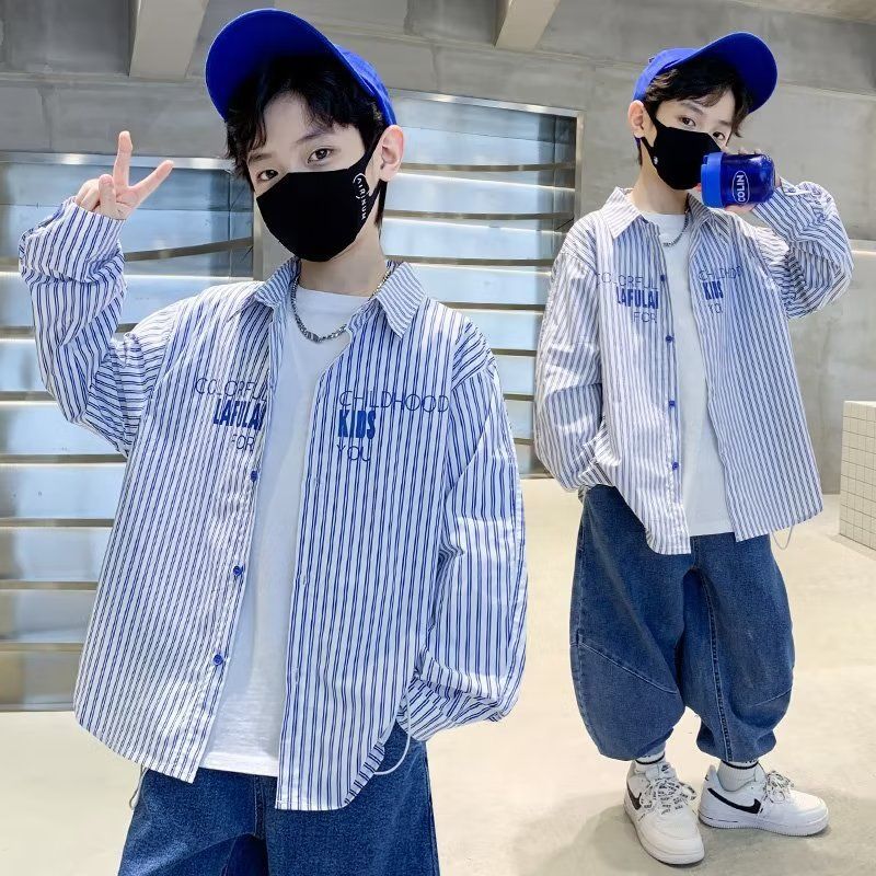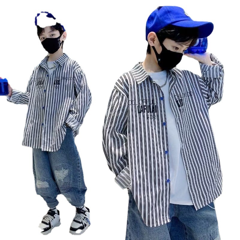 | nameOriginal | Boys' spring and autumn striped shirt coat 2023 new boys' spring clothes big children fried street spring fashion |