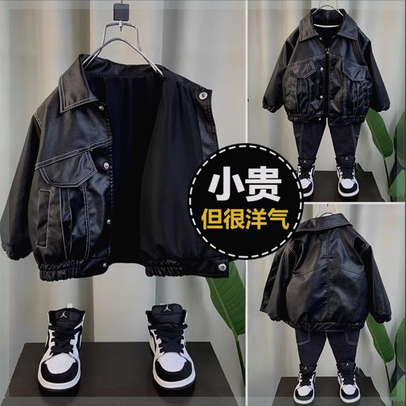 Boys' Spring Coat 2024 New Western Style Baby's Spring and Autumn Leather Jacket Top Children's Han Fan Cool Handsome Leather Jacket