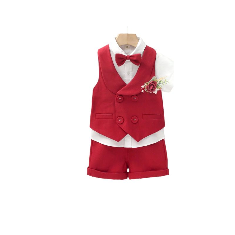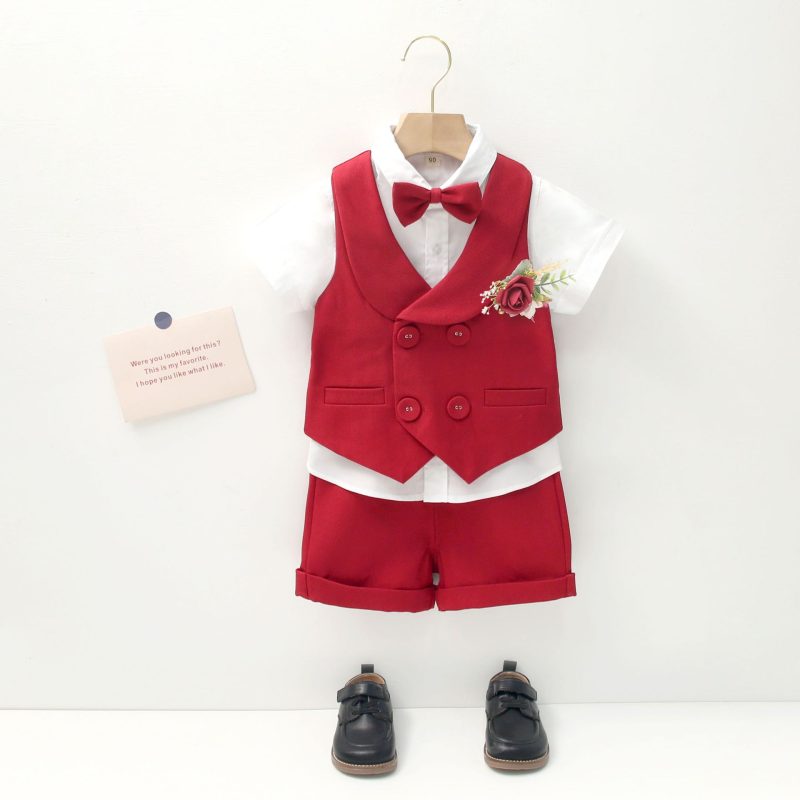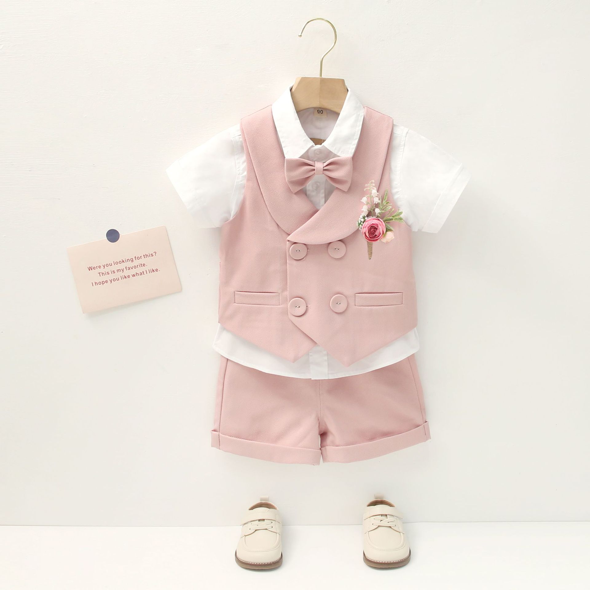 nameOriginal | Boys' Suit Suit Summer Boys' One-Year-Old Dress British Flower Children's Wedding Suit Piano Watch Playing Suit |