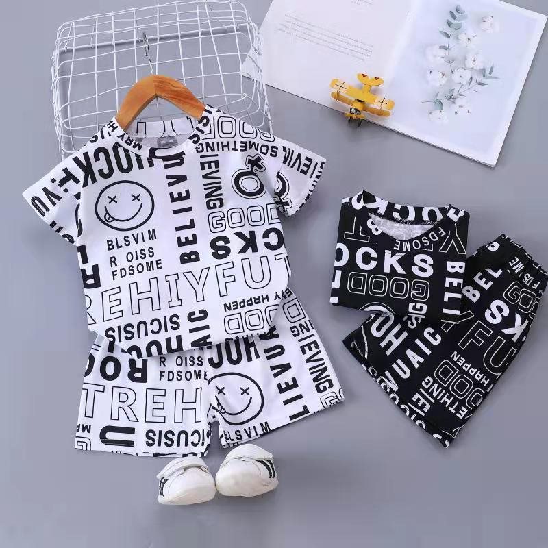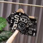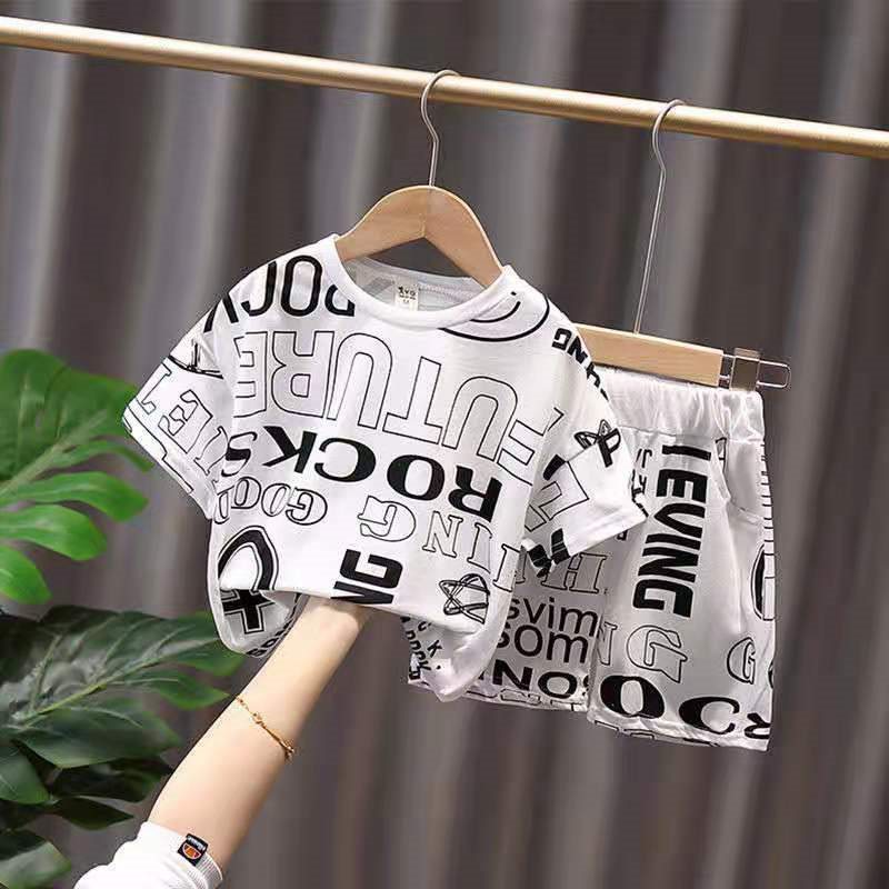 Boys' Summer Casual Handsome Boys' Short-sleeved Children's Western-style Summer Internet Trendy Baby Letter Two-piece Set