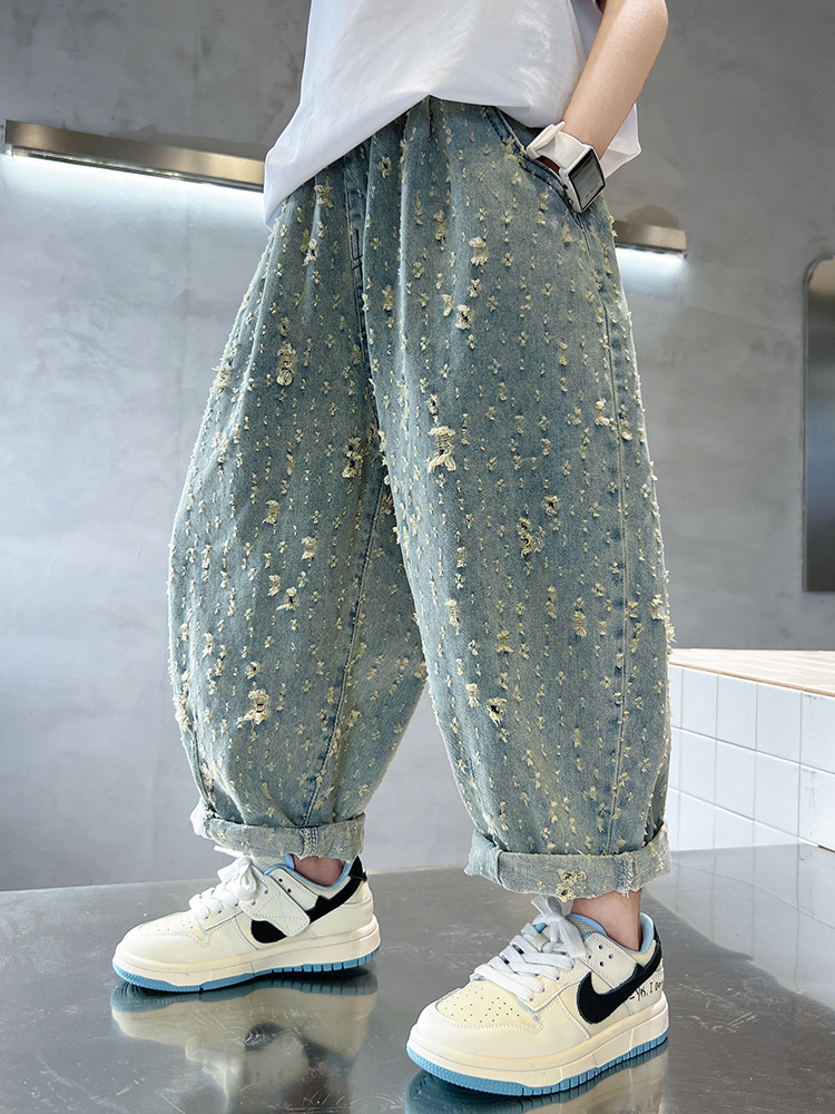 | nameOriginal | Boys' Summer Jeans 2024 New Children's Boys' Trendy Cool Ripped Pants Large Children's Summer Loose Trousers |