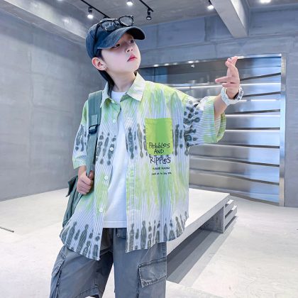 | nameOriginal | Boys' Summer Striped Gradient Short-sleeved Shirt 2024 New Style Children's Boy's Shirt Jacket |