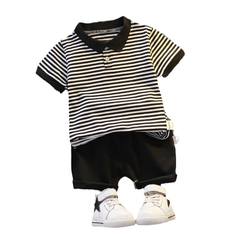 | nameOriginal | Boys' Summer Suit 2024 Summer New Style Boys' Baby Boys' Fashionable Short-sleeved Striped Polo Shirt Two-piece Set |