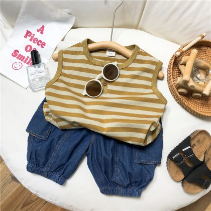 Boys' Summer Vest Children's Summer Korean-style Breathable Striped Sleeveless T-shirt Baby's Casual All-match Waistcoat