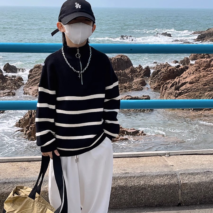| nameOriginal | Boys' sweater autumn children's knitted sweater medium and small boys baby boys' striped bottoming shirt 2024 New Western style fashion |