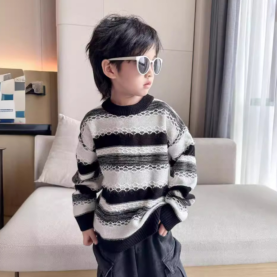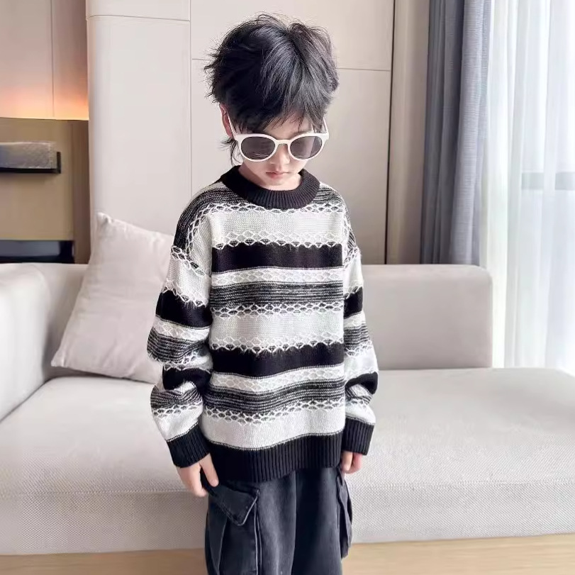 | nameOriginal | Boys' Sweater Striped Children's Solid Color Knitted Pullover 2024 Winter New Handsome Children's Outer Wear Top |
