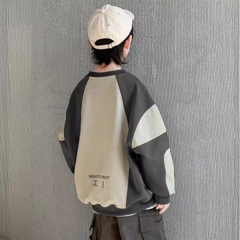 سويت شيرت للأولاد لربيع وخريف 2024 ملابس ربيع جديدة للأطفال ملابس بلوتون وسيم قميص علوي متوسط ​​كبير للأطفال لفصل الربيع عصري