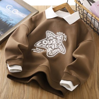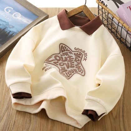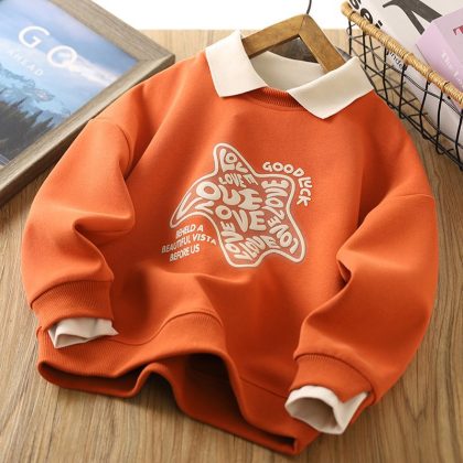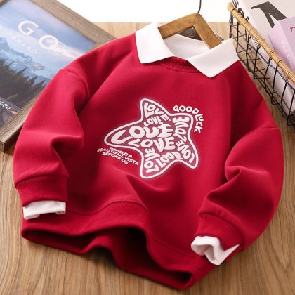| nameOriginal | Boys' Sweatshirt Spring and Autumn Children's Flip Collar Fashion Top 2024 Spring New Year Red Clothes Boys Base Shirt |