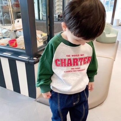 Boys' Swedie Spring and Autumn 2024 New Children's Contrast Color Stitching Long Sleeve Baby Korean-style All-match Casual Top Trendy