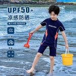 Boys Swimsuit Split Upf50 Sunscreen Two-piece Set Summer 2024 New Children's Outdoor Short-sleeved Swim Trunks suit
