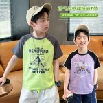 الأولاد تي شيرت قصيرة الأكمام الصيف القطن 2024 جديد الأطفال وسيم تي شيرت كبير الصبي أفضل الكورية نمط العصرية ثوب أطفال