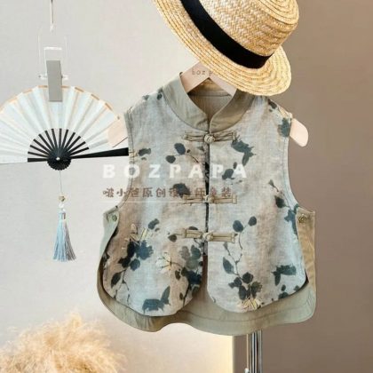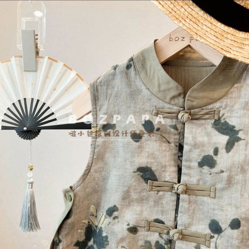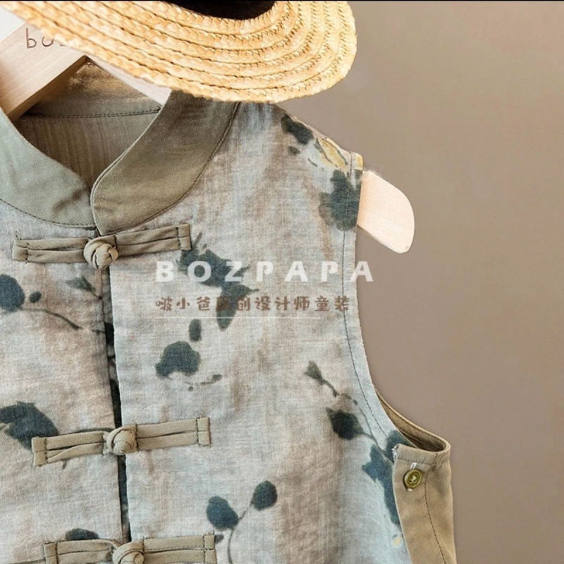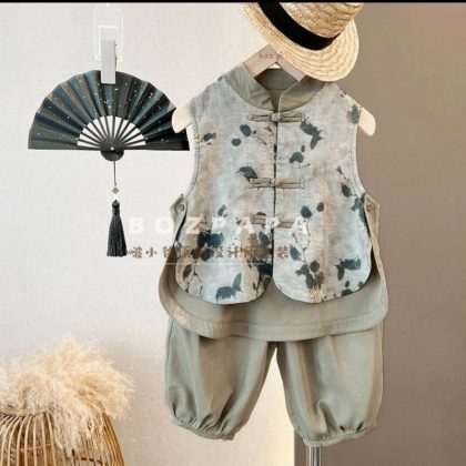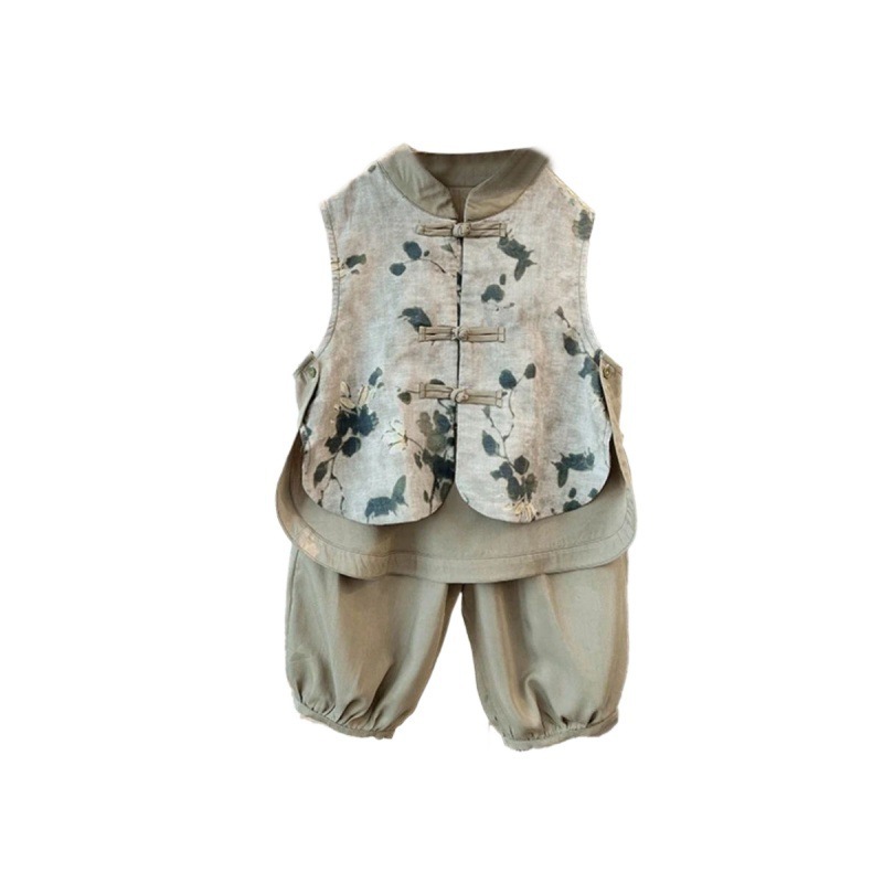 nameOriginal | Boys' Vest Set 23024 New Chinese Style National Style Short Sleeve Buckle Summer Breathable Two-Piece Fashionable Set for Baby Boys |