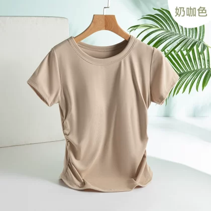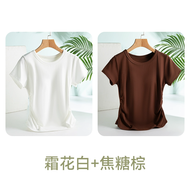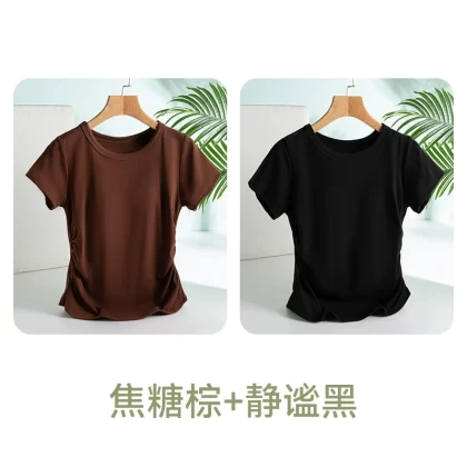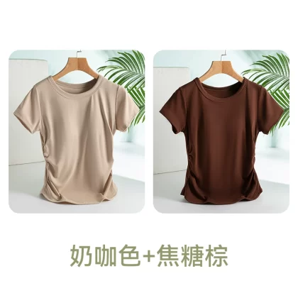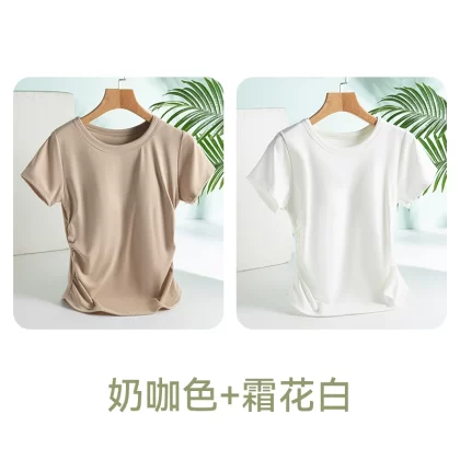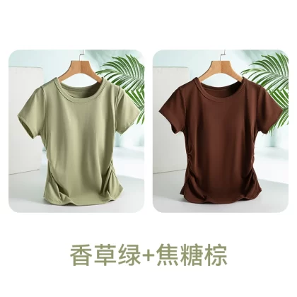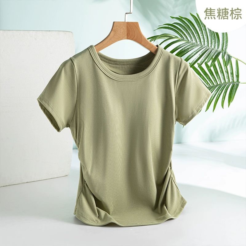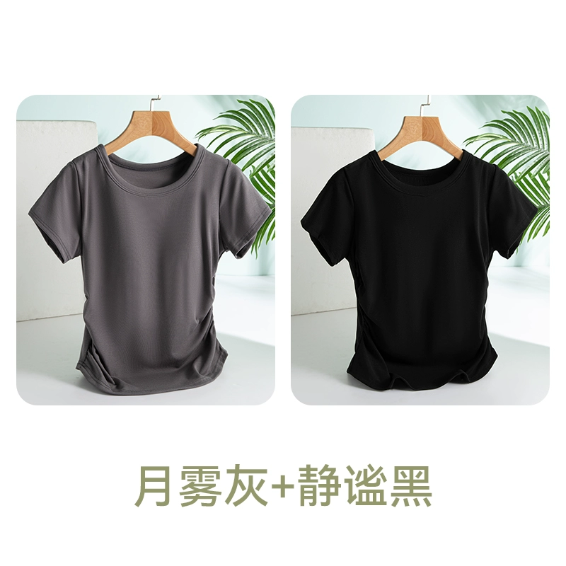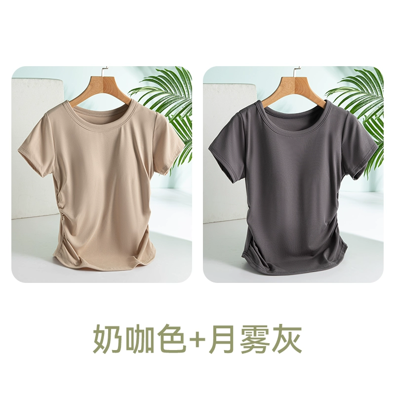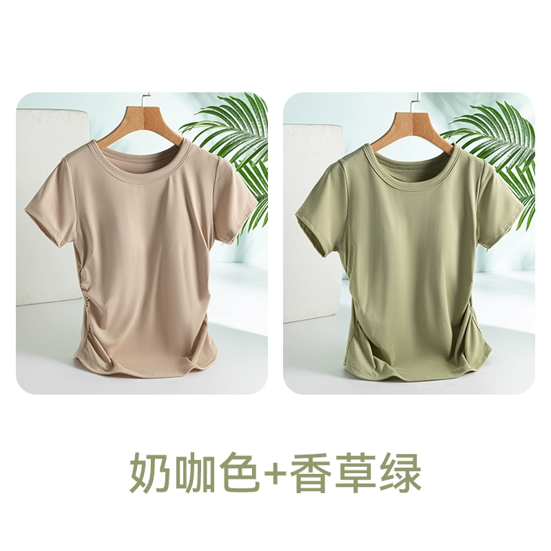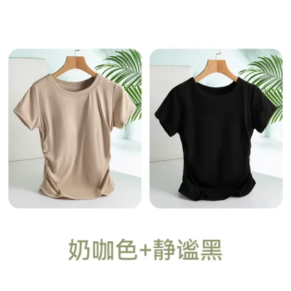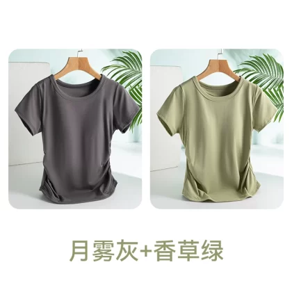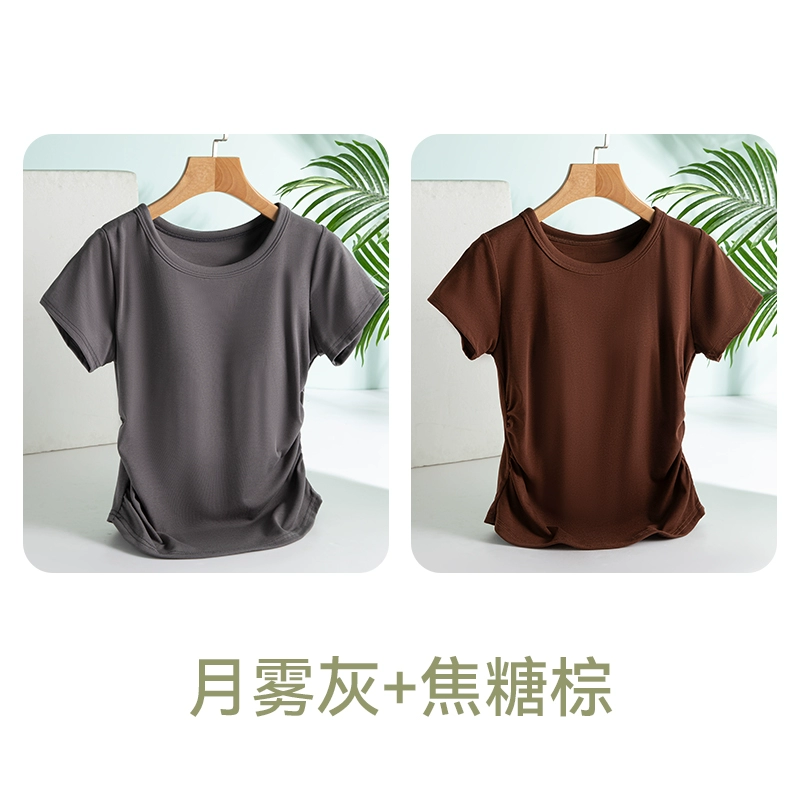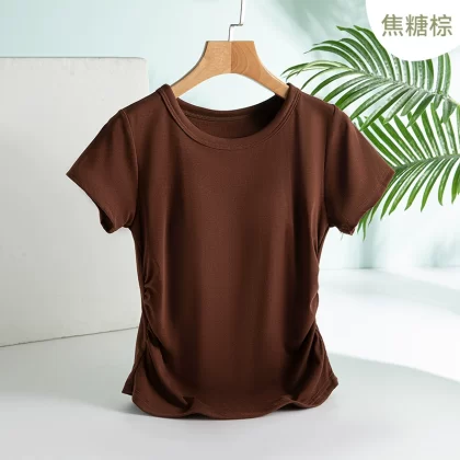 Bra-free slim-fitting yoga short-sleeved T-shirt